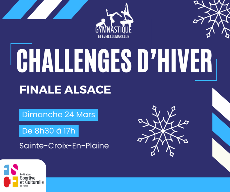 Cette dernière compétition des Challenges d'Hiver aura lieu le dimanche 24 mars 2024 au Complexe Sportif La Colombre à Sainte-Croix-En-Plaine.